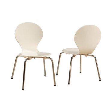 Classic bentwood activity chair has white painted surface and shiny chrome tubular steel legs. Some assembly required.